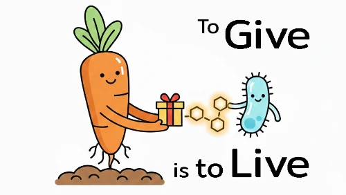Plants give away much of the energy that they get through photosynthesis. They release sugars into the soil to feed bacteria. They give sugars and fats to feed fungi. Plants also release other chemicals into the soil to suppress the microbes that they don’t want and encourage the ones that they do want. The sugars and other things that plants release through their roots are called root exudates.