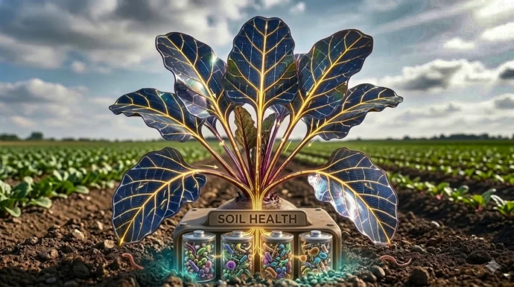 Soil is like a battery; plants are the solar panels and charge controllers, soil microbes are the transformers and chargers.
